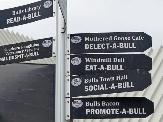 There’s not much to say about Bulls but you wanted quirky on this tour and quirky is what you’ll get. The only thing of note in this town is the clever (or not!) use of the town’s name by local businesses – unforget-a-bull and hospit-a-bull are two of our personal favourites – let us know yours!